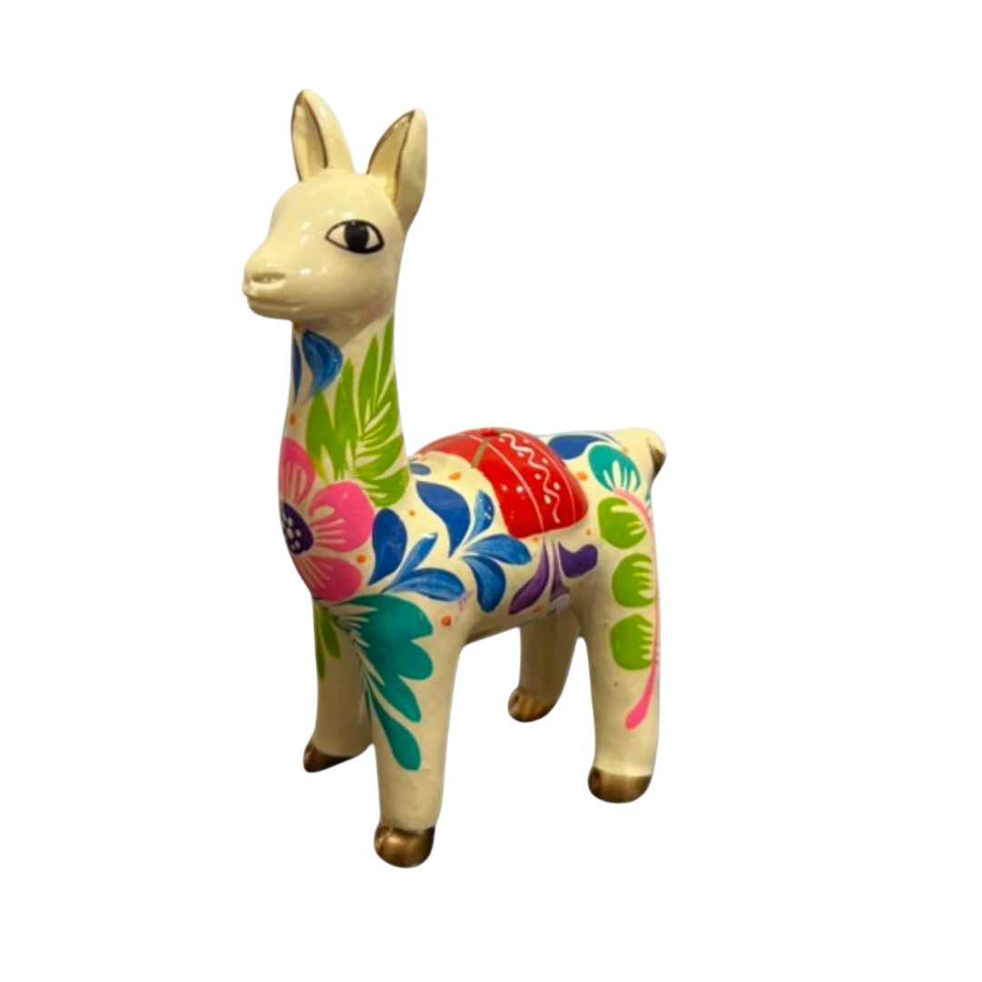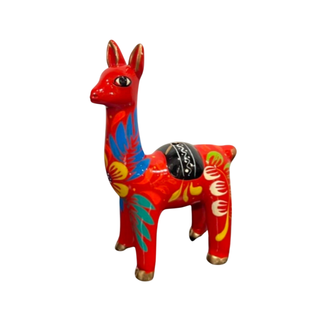 La llama de Ayacucho es una expresión artesanal que representa la conexión con la cultura andina. Hecha a mano con materiales tradicionales, destaca por sus colores vibrantes y detalles únicos, reflejando el espíritu y la identidad de los Andes.